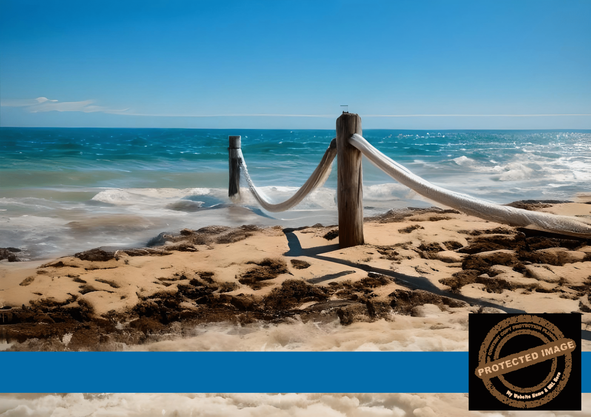 Bask in the golden light of Australia’s Coral Coast with this uplifting digital art print from Nijalo Art, featuring a tranquil beach scene in Exmouth, Western Australia. A weathered rope fence runs along the sand, while gentle waves roll onto the shore and seaweed patterns dance in the sun. The turquoise water stretches to the horizon under a brilliant blue sky, evoking warmth, relaxation, and the timeless beauty of the ocean’s edge. This artwork is perfect for modern homes, beach cottages, or anyone who finds joy in the sun, surf, and peaceful moments by the sea.