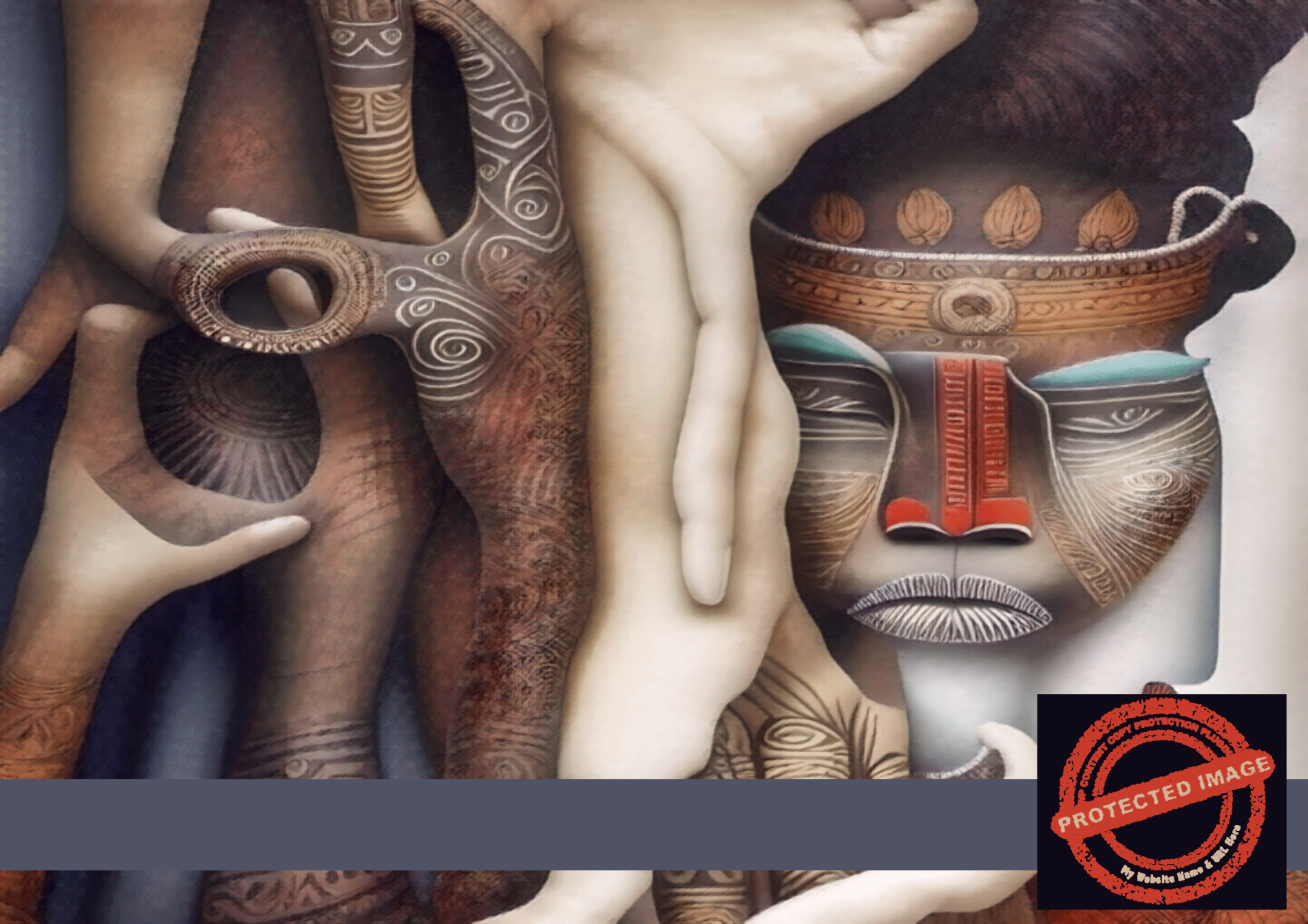 - Abstract African portrait with tribal motifs and detailed hand designs