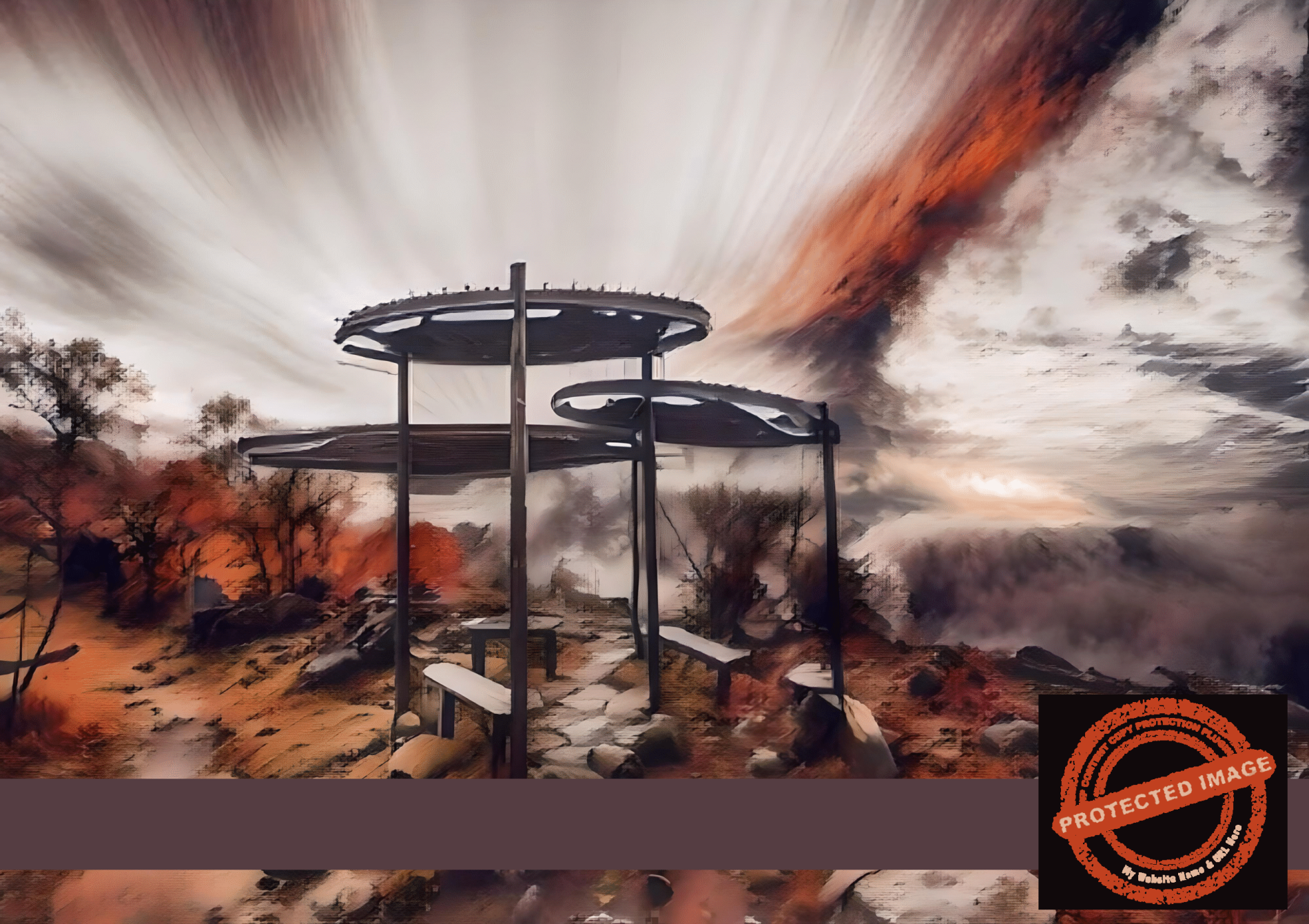 Experience the power of nature and place with this breathtaking digital art print from Nijalo Art, featuring rustic benches beneath dramatic, swirling skies and surrounded by autumn-hued foliage. The play of light and shadow, rocky terrain, and windswept atmosphere evoke a sense of mystery, sanctuary, and timeless beauty. This artwork is perfect for modern homes, creative studios, or anyone who loves landscapes that capture both tranquility and wild energy.